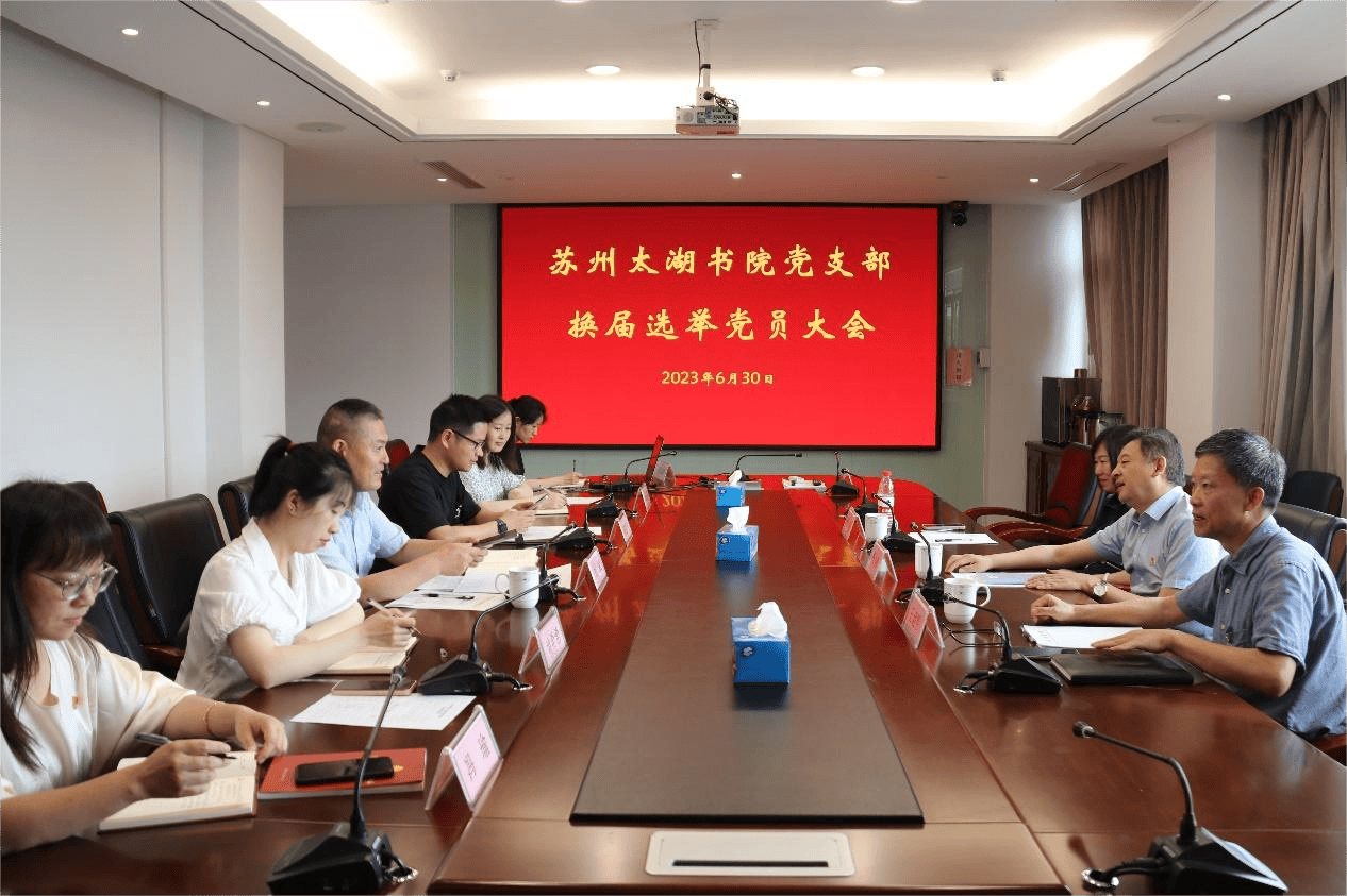 2023年6月30日下午,蘇州太湖書院黨支部在太湖書院三樓會議室舉行換屆選舉大會。出席本次大會的代表有黨支部書記劉斌、副書記陳建飛等全體黨員,蘇州市民政局社會組織黨委書記楊小勇、社會組織紀委委員徐嘉,太湖書院執(zhí)行院長王建明以及入黨積極分子列席了本次會議,會議由陳建飛同志主持。 會議首先由支...