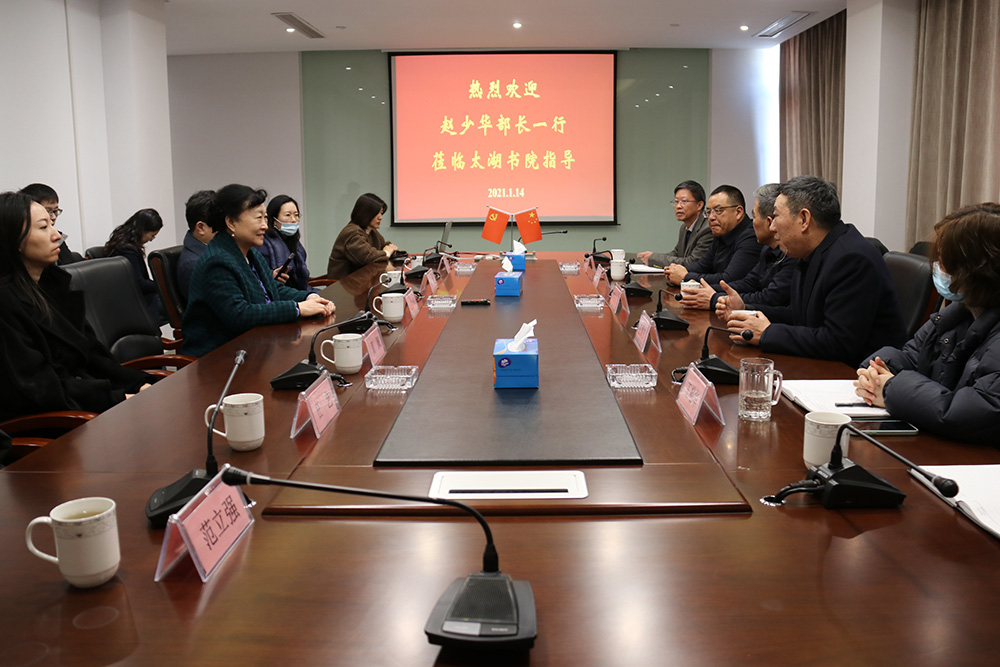 近日,“提升蘇州城市能級(jí)”和“蘇州文化高質(zhì)量發(fā)展”課題組一行來蘇考察調(diào)研。1月14日上午,課題組組長,文化部原黨組副書記、副部長,中國政策科學(xué)研究會(huì)副會(huì)長趙少華,率領(lǐng)課題組成員清華大學(xué)文化經(jīng)濟(jì)研究院副院長、清華大學(xué)經(jīng)管學(xué)院教授薛鐳,清華大學(xué)文化經(jīng)濟(jì)研究院院長助理周佩,清華大學(xué)文化經(jīng)濟(jì)研究院學(xué)術(shù)顧問委員會(huì)主席助理樊菲,中國政策科學(xué)研究會(huì)文化政策委員會(huì)辦公室主任任藝等一行來到太湖書院考察。蘇州市社科聯(lián)主席劉伯高,江蘇乾寶科技發(fā)展集團(tuán)執(zhí)行總裁、太湖書院秘書長王翼寧,集團(tuán)副總裁、太湖書院副院長許建華,太湖書院執(zhí)行院長王建明等人陪同考察。