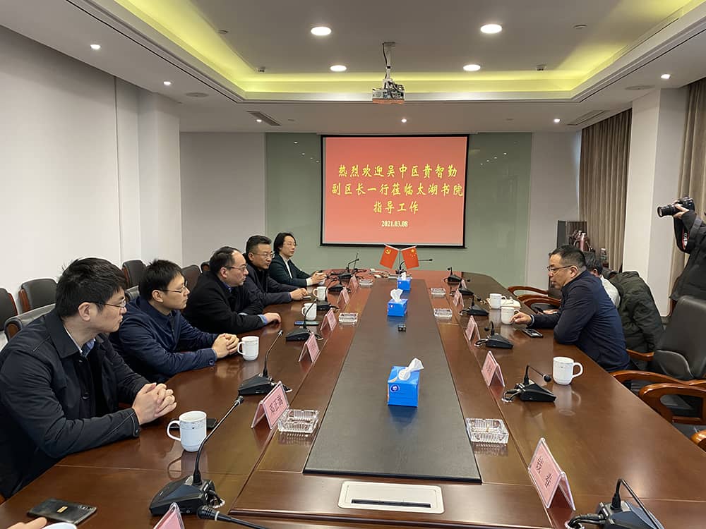 考察過程中,賁智勤副區(qū)長(zhǎng)一行還參觀了太湖書院文博館、名家藏書館、非遺古建館和允中藝術(shù)館等場(chǎng)館,對(duì)太湖書院有了更加全面深入的了解。他希望,太湖書院能在現(xiàn)有的學(xué)術(shù)研究成果基礎(chǔ)上,深入挖掘優(yōu)秀傳統(tǒng)文化,為打造“江南文化”品牌、落實(shí)蘇州市文化產(chǎn)業(yè)倍增計(jì)劃,促進(jìn)我市文化產(chǎn)業(yè)高質(zhì)量發(fā)展做出應(yīng)有貢獻(xiàn);同時(shí)充分利用院士專家資源及其成果,精準(zhǔn)對(duì)接吳中區(qū)的科技創(chuàng)新及產(chǎn)業(yè)發(fā)展,積極深入開展現(xiàn)代易學(xué)和工程哲學(xué)研究及其普及工作,加快建設(shè)新型社會(huì)智庫,充分發(fā)揮太湖書院社會(huì)智庫服務(wù)地方?jīng)Q策咨詢作用,為吳中區(qū)和蘇州市經(jīng)濟(jì)社會(huì)發(fā)展貢獻(xiàn)更多的智慧和力量。