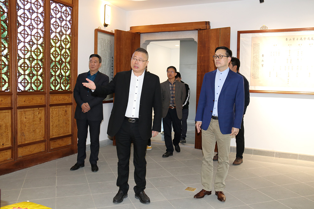 在書院領(lǐng)導和工作人員的陪同下,魯育宗主席一行參觀了太湖書院文博館、名家藏書館、非遺古建館、允中藝術(shù)館和被列入“天堂蘇州·百園之城”目錄的太湖書院易園。