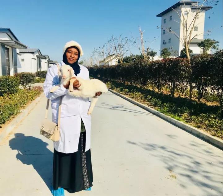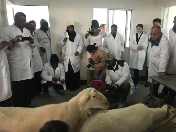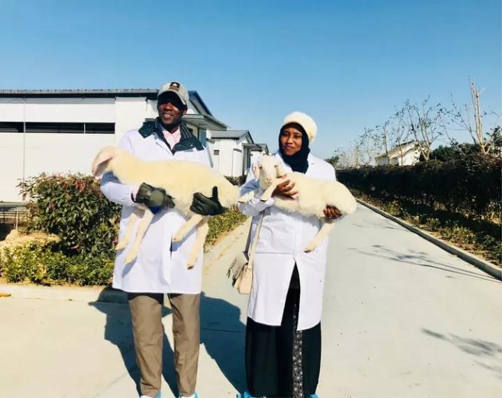 蘇丹共和國的大學(xué)教授們對乾寶牧業(yè)養(yǎng)殖的湖羊非常親切,非常激動,并提出抱著照相留念。