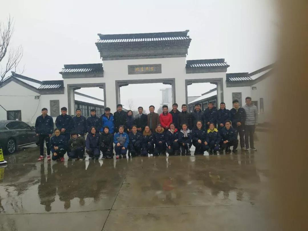 實(shí)習(xí)生與老師、企業(yè)領(lǐng)導(dǎo)在門(mén)前合影留念