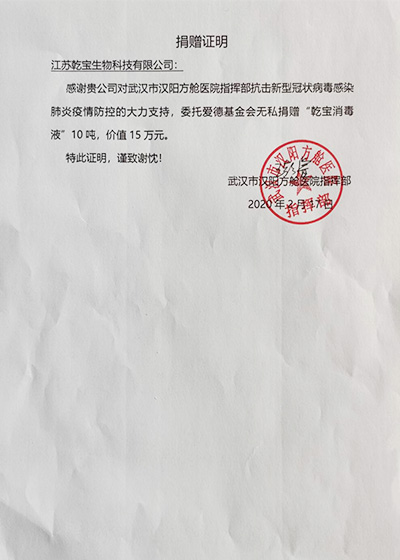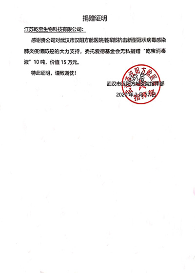 • 武漢漢陽(yáng)方艙醫(yī)院捐贈(zèng)證書