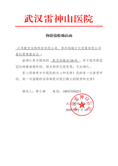 • 武漢雷神山物資接收函