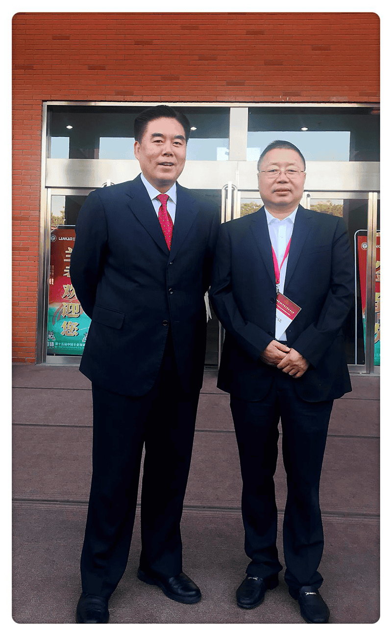 中國(guó)畜牧業(yè)協(xié)會(huì)會(huì)長(zhǎng)李希榮(左)與乾寶投資集團(tuán)董事長(zhǎng)王躍程(右)合影留念