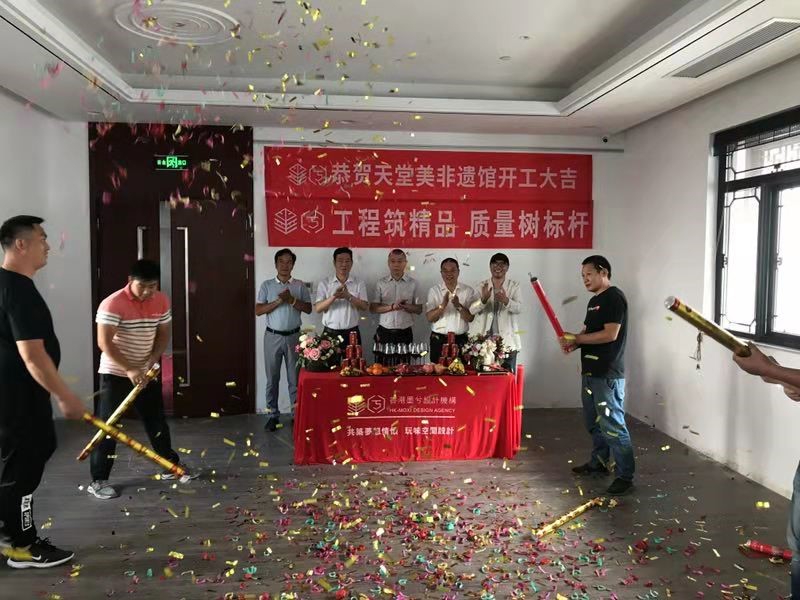 ? ? ? ?2019年9月19日上午8時58分,蘇州“天堂美非遺館”開工儀式在太湖書院隆重舉行,天堂美非遺館是太湖書院“一園六館”建設中具有代表性的展示場館,該場館于2019年9月19日開工,10月30日竣工,特聘請香山幫傳統(tǒng)建筑營造技藝國家級非物質文化遺產(chǎn)傳承人陸耀祖大師為總指導,多名市、區(qū)級代表性傳承人參與共同建設,建成后將成為“香山幫傳統(tǒng)建筑營造技藝”傳承基地內具有代表性的精品展館。