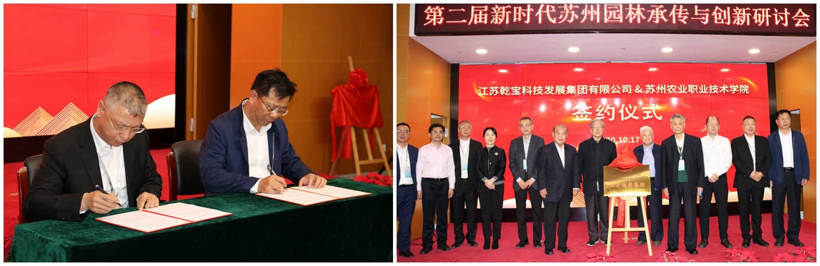 為了破解蘇州園林產(chǎn)業(yè)人才的短缺瓶頸,蘇州農(nóng)業(yè)職業(yè)技術(shù)學(xué)院和江蘇乾寶科技發(fā)展集團(tuán)有限公司簽訂了“園林人才校企合作培養(yǎng)基地共建協(xié)議”,并為基地揭牌。
