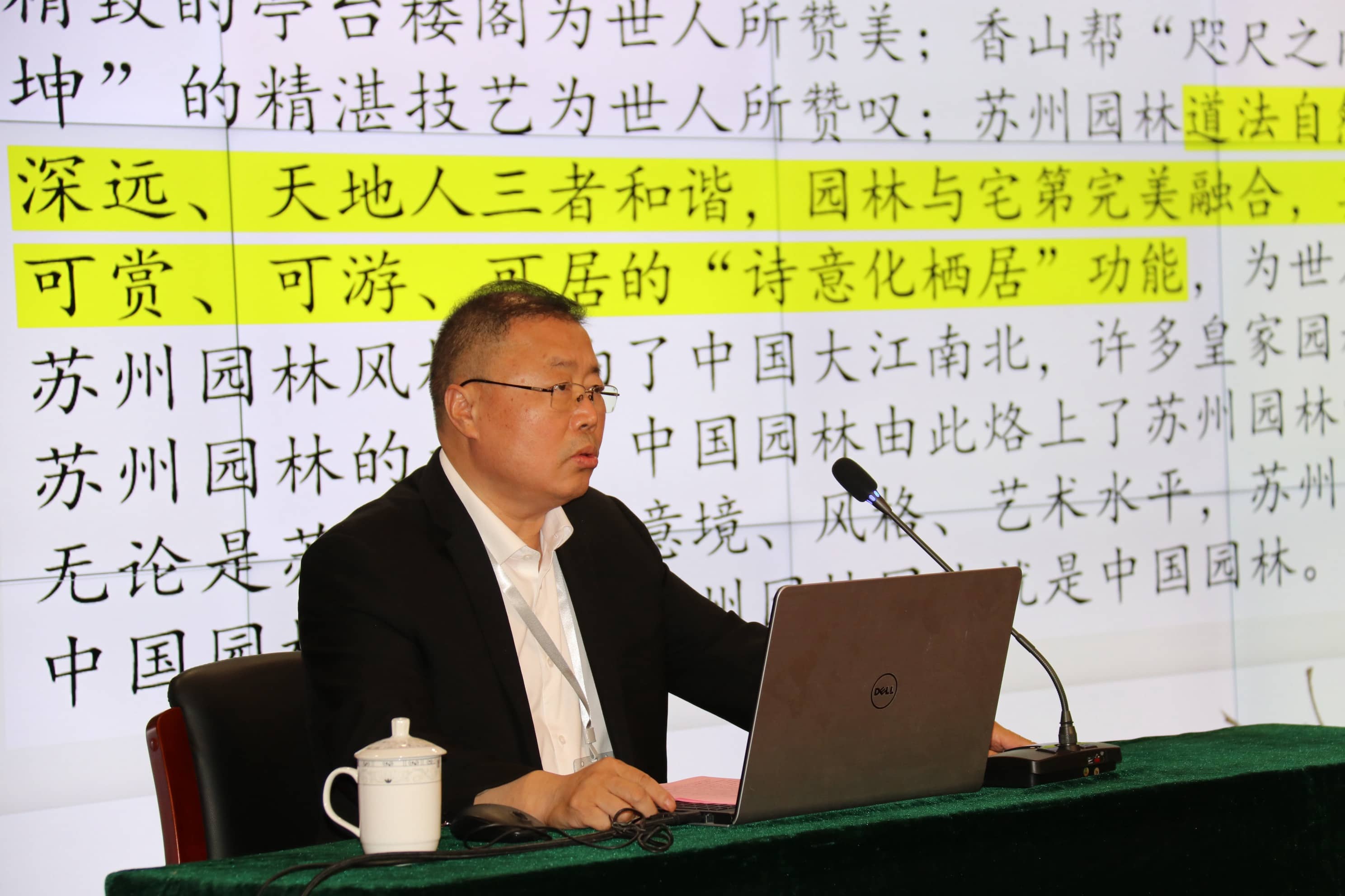 蘇州香山幫營造協(xié)會常務(wù)副會長兼秘書長許建華全面介紹了世界非遺文化香山幫的創(chuàng)建與傳承歷史,講述了大國工匠香山幫對中國和世界園林事業(yè)做出的輝煌歷史性貢獻(xiàn),分享了當(dāng)代香山幫大師和傳承人堅(jiān)守與創(chuàng)新園林發(fā)展所做的努力,以及對未來香山幫怎樣搶抓發(fā)展機(jī)遇和如何創(chuàng)新性應(yīng)對新時(shí)代園林的挑戰(zhàn)提出了啟發(fā)性意見。