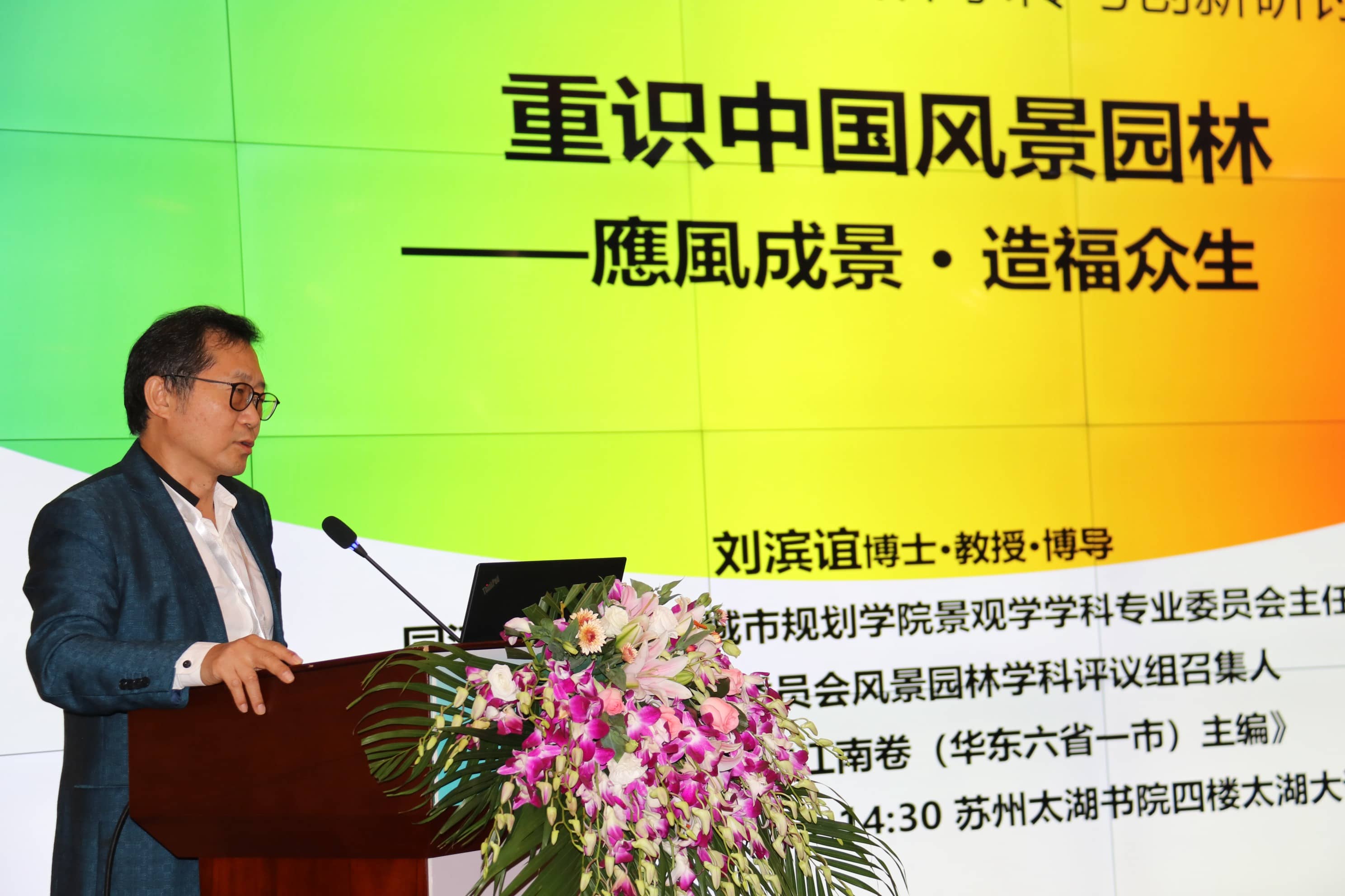 隨后,同濟(jì)大學(xué)風(fēng)景園林學(xué)科專業(yè)委員會主任劉濱誼從風(fēng)景觀的溯源啟示、園林實(shí)踐發(fā)展歷史、風(fēng)景園林的中國世界觀、價(jià)值觀和哲學(xué)觀,以及案例分析等角度,闡述了構(gòu)建未來風(fēng)景園林的觀點(diǎn)。