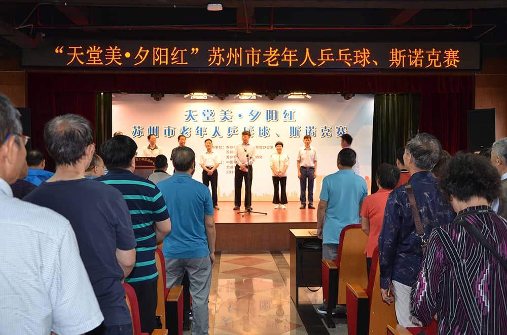6月23日,由蘇州市老齡辦、蘇州市老齡協(xié)會、蘇州市老年人體育協(xié)會聯(lián)合主辦的“天堂美·夕陽紅”蘇州市老年人乒乓球、斯諾克賽于在市委老干部局的活動中心舉行?;顒娱_始前舉行了簡短的開幕式,市政府聶飆副市長,市人大常委會原副主任、市老齡協(xié)會周玉龍會長,市委老干部局、市民政局等領(lǐng)導(dǎo)出席開幕式。開幕式由市民政局副局長、市老齡協(xié)會鄭利江常務(wù)副會長主持,周玉龍會長致辭,聶飆副市長宣布比賽開始。出席開幕式的還有各市(區(qū))老齡辦、老齡協(xié)會、老年體協(xié)負責(zé)人及運動員、裁判員共200多人。