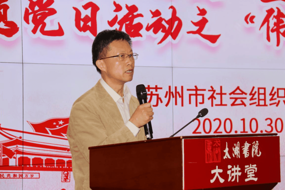 活動上,太湖書院執(zhí)行院長王建明代表活動承辦單位致歡迎辭,并對市社會組織黨委多年來給予的關心支持表示感謝;簡要介紹了太湖書院黨支部在第一任書記丘亮輝的領導下,在書院理事長王躍程的大力支持下所取得的長足進步;闡述了太湖書院黨支部黨建特色:以習 近平新時代中國特色社會主義思想為指導,堅定文化自信;以踐行社會主義核心價值觀為主線,積極參加蘇州市社會組織黨委的各項活動,積極發(fā)揮太湖書院的優(yōu)勢傳播新時代中國特色社會主義文化;圍繞蘇州市委市政府的重大決策,自覺服務地方經(jīng)濟社會的發(fā)展,充分發(fā)揮建言獻策的智庫功能,并多次獲得了市委市政府主要領導的批示。