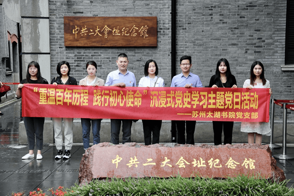2021 年是慶祝中國共產(chǎn)黨成立 100 周年的重大吉慶之年。為進一步增強基層黨員的責任感、使命感和榮譽感,引導黨員“學黨史、悟思想、辦實事、開新局”,太湖書院黨支部開展“重溫百年歷程,踐行初心使命”沉浸式黨史學習主題黨日活動。在黨支部書記劉斌同志的帶領下,全體黨員、預備黨員和積極分子到上海進行了現(xiàn)場學習。 上午,大家一同參觀了四行倉庫抗戰(zhàn)紀念館。場館通過版面和實物陳列,結(jié)合戰(zhàn)斗場景、沙盤模型、微縮景箱、油畫雕塑、互動游戲和影視片段等展示手段,再現(xiàn)了“四行倉庫保衛(wèi)戰(zhàn)”的英雄歷史。大家重溫了廣大愛國官民前赴后繼、同仇敵愾血鏖淞滬的偉大歷史,深刻體會了以謝晉元為代表的“八百壯士”堅守四行英勇殺敵的無畏精神和孤軍抗日、不屈不撓的民族氣節(jié)。